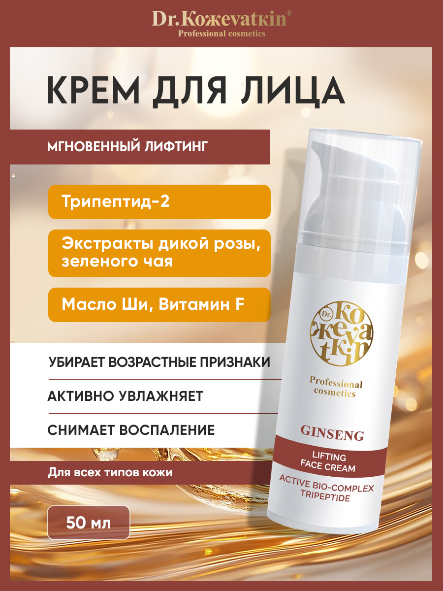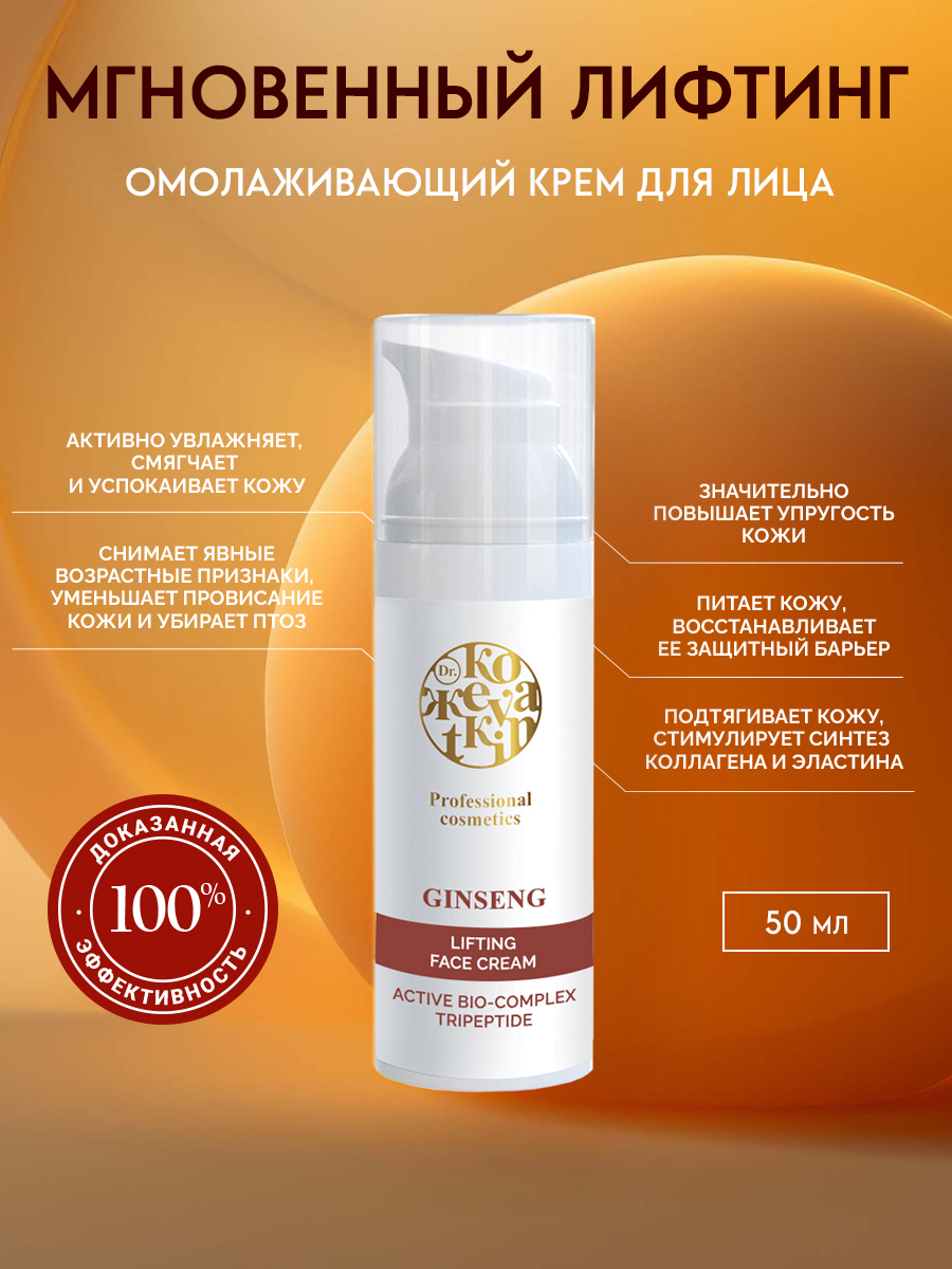 Крем с лифтинг-эффектом для лица антивозрастной от Dr. Koжеvatkin — это профессиональное косметическое средство, которое содержит активные компоненты направленные на сохранение молодости и красоты кожи, защищая ее клетки от неблагоприятных факторов внешней среды и преждевременного старения.