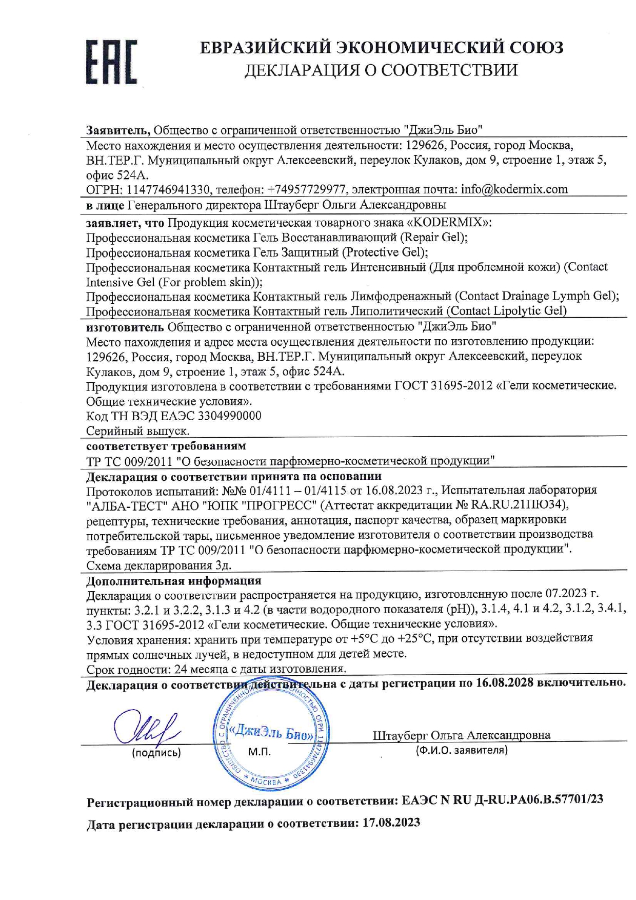 РЕКОМЕНДАЦИИ ПО ПРИМЕНЕНИЮ: тонким слоем нанести гель на предварительно очищенную кожу по рабочим зонам перед применением аппарата. После окончания процедуры остатки геля при необходимости смыть водой.